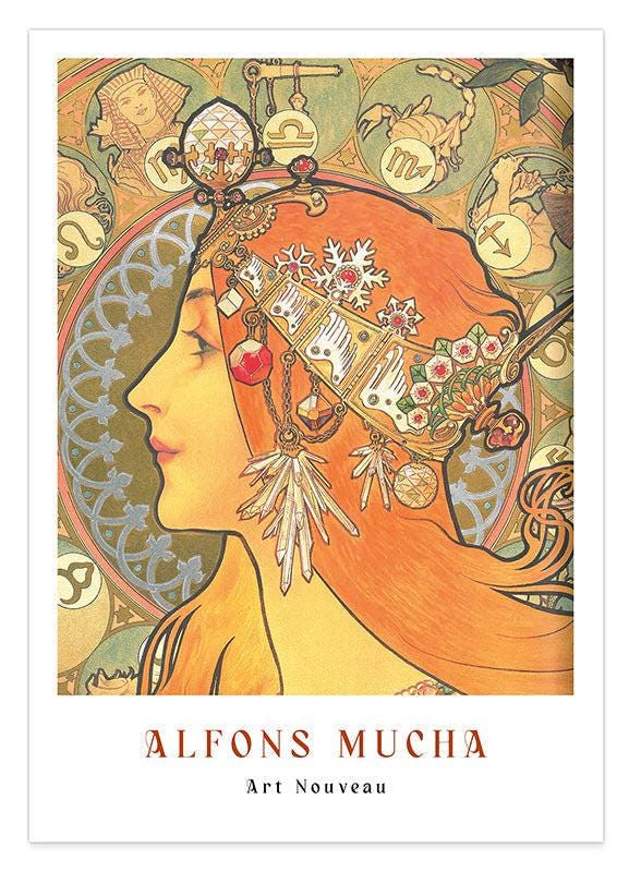 Alfons Mucha - Museum-Poster Frauenprofil mit Sternzeichen
