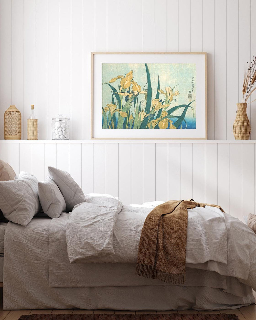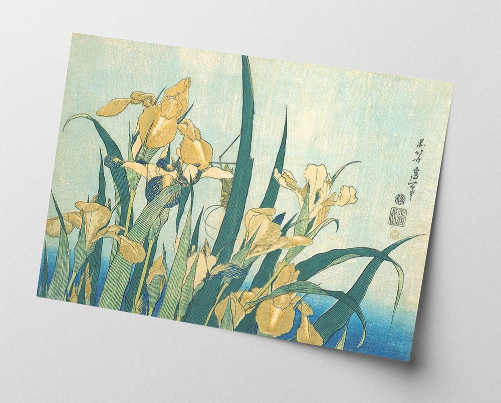 Katsushika Hokusai - Grashüpfer und Iris (Gelbe Blumen)