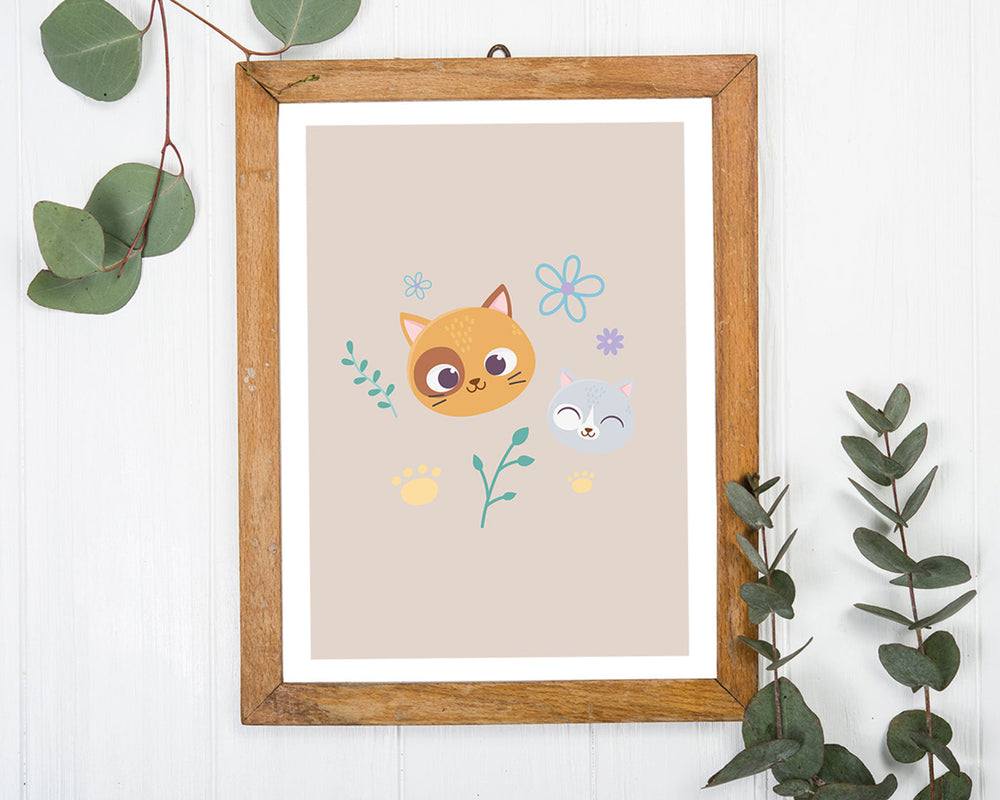 Katzen im Blumenfeld, Kunst für Zuhause, Süße Illustration, Zeichnung für Kinder